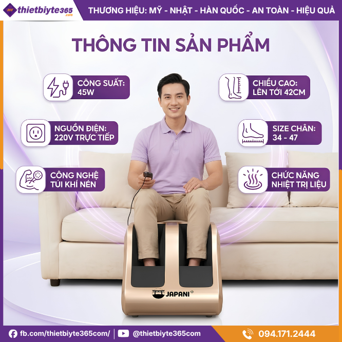Quý khách có thể dễ dàng mua Máy Massage Chân JAPANI MSC-6335 dây cắm trực tiếp chính hãng thông qua website chính thức hoặc liên hệ hotline của Thiết Bị Y Tế 365 để được tư vấn cụ thể về sản phẩm, giá bán và chương trình ưu đãi hiện hành.
