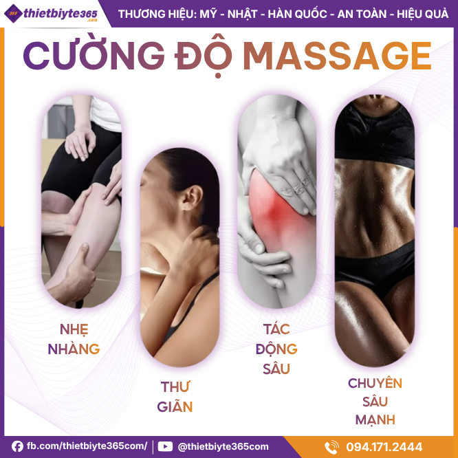 - Đầu 4 chân: Tác động diện rộng, phù hợp đùi, bắp chân.
