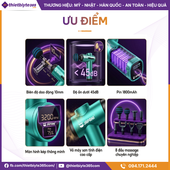 Quý khách có thể dễ dàng mua Súng massage cầm tay JAPANI MCT-1889 8 đầu chính hãng thông qua website chính thức hoặc liên hệ hotline của Thiết Bị Y Tế 365 để được tư vấn cụ thể về sản phẩm, giá bán và chương trình ưu đãi hiện hành.